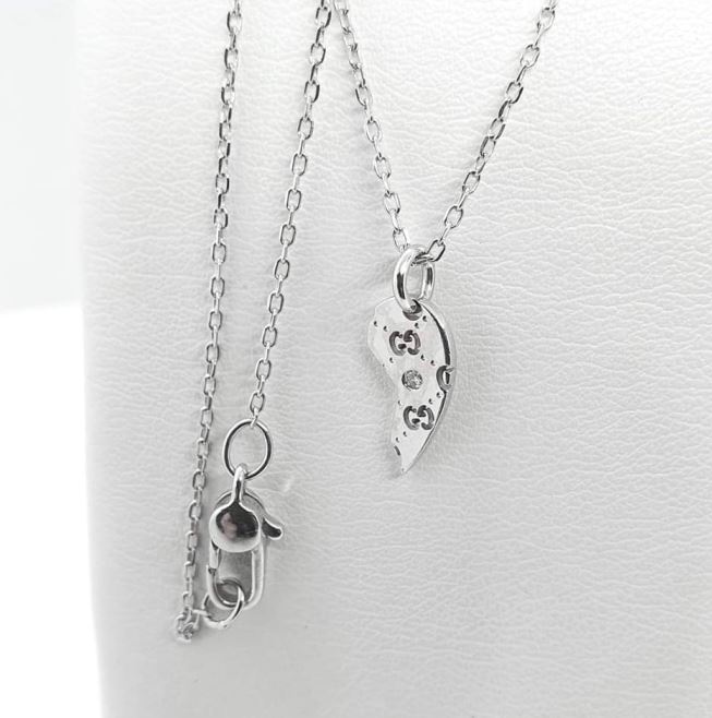 Gucci collana maglia rolo con ciondolo mezzo cuore in oro bianco 750 e diamantino.