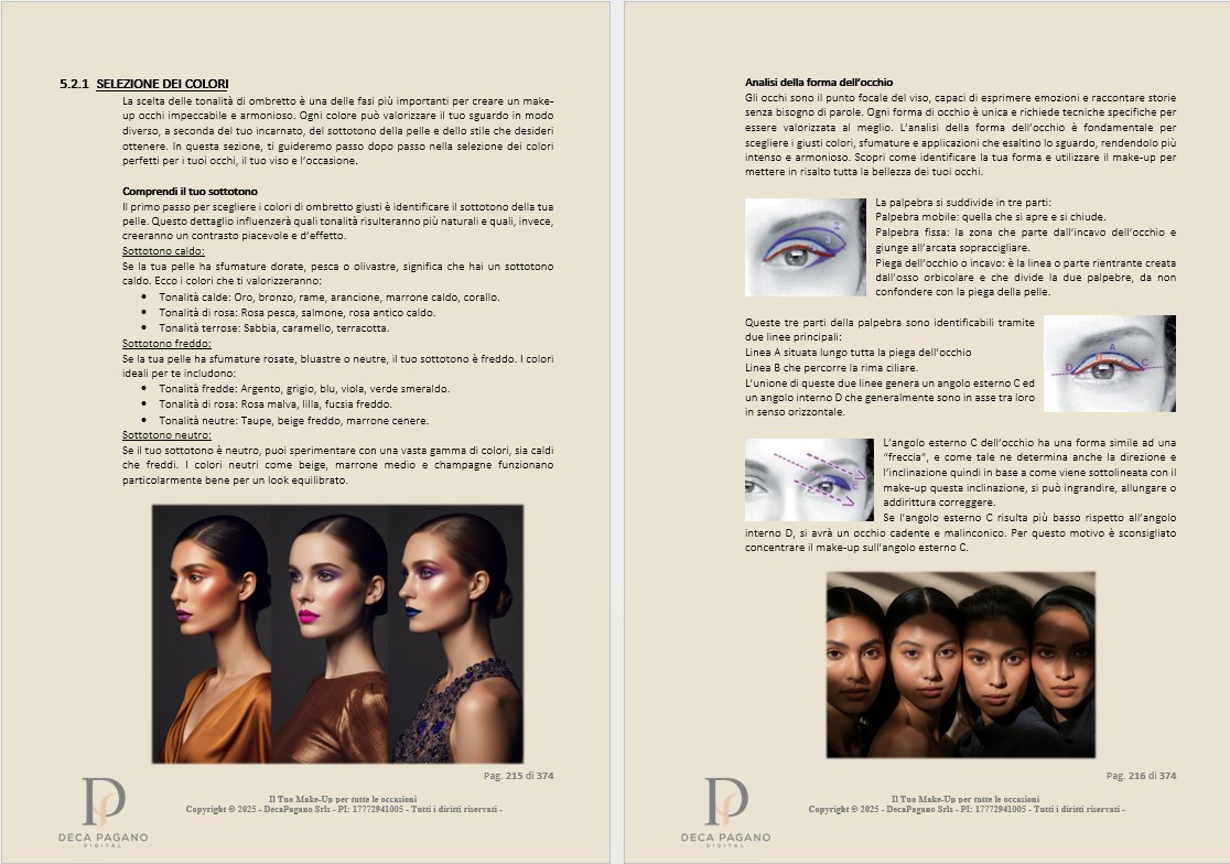 Dalla teoria del colore all’anatomia utile, dalla base al dettaglio occhi/labbra, fino ai look per ogni occasione.