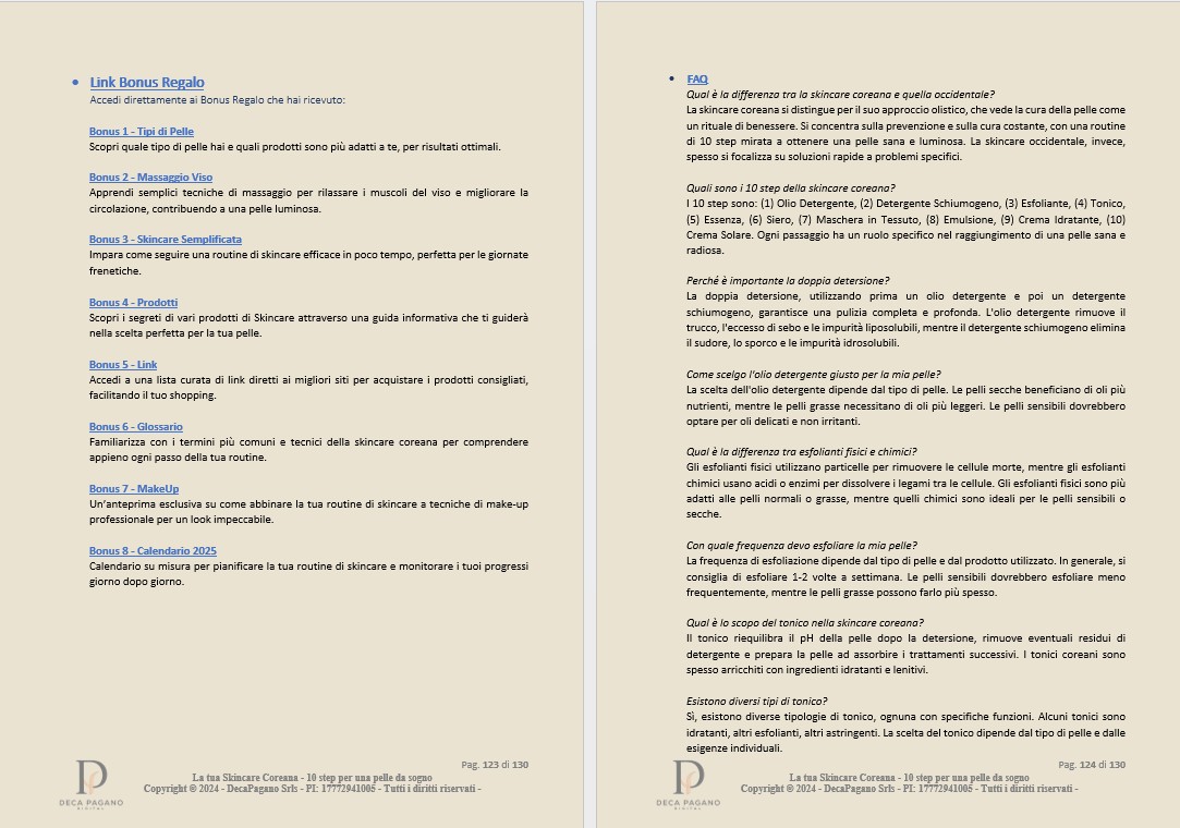 | . | Acquisti a titolo gratuito il Pacchetto Extra Bonus per la tua Guida di Skin Care Coreana |