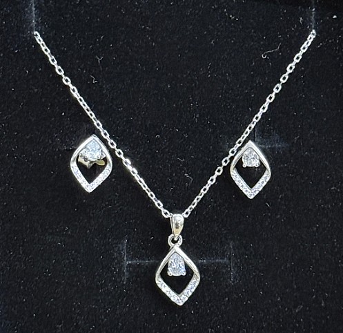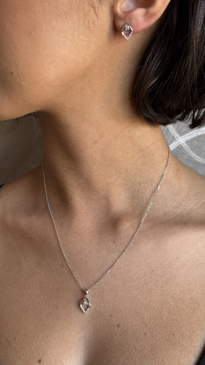 Eleganza e raffinatezza si incontrano in questo splendido set di gioielli in argento composto da una collana e orecchini coordinati.